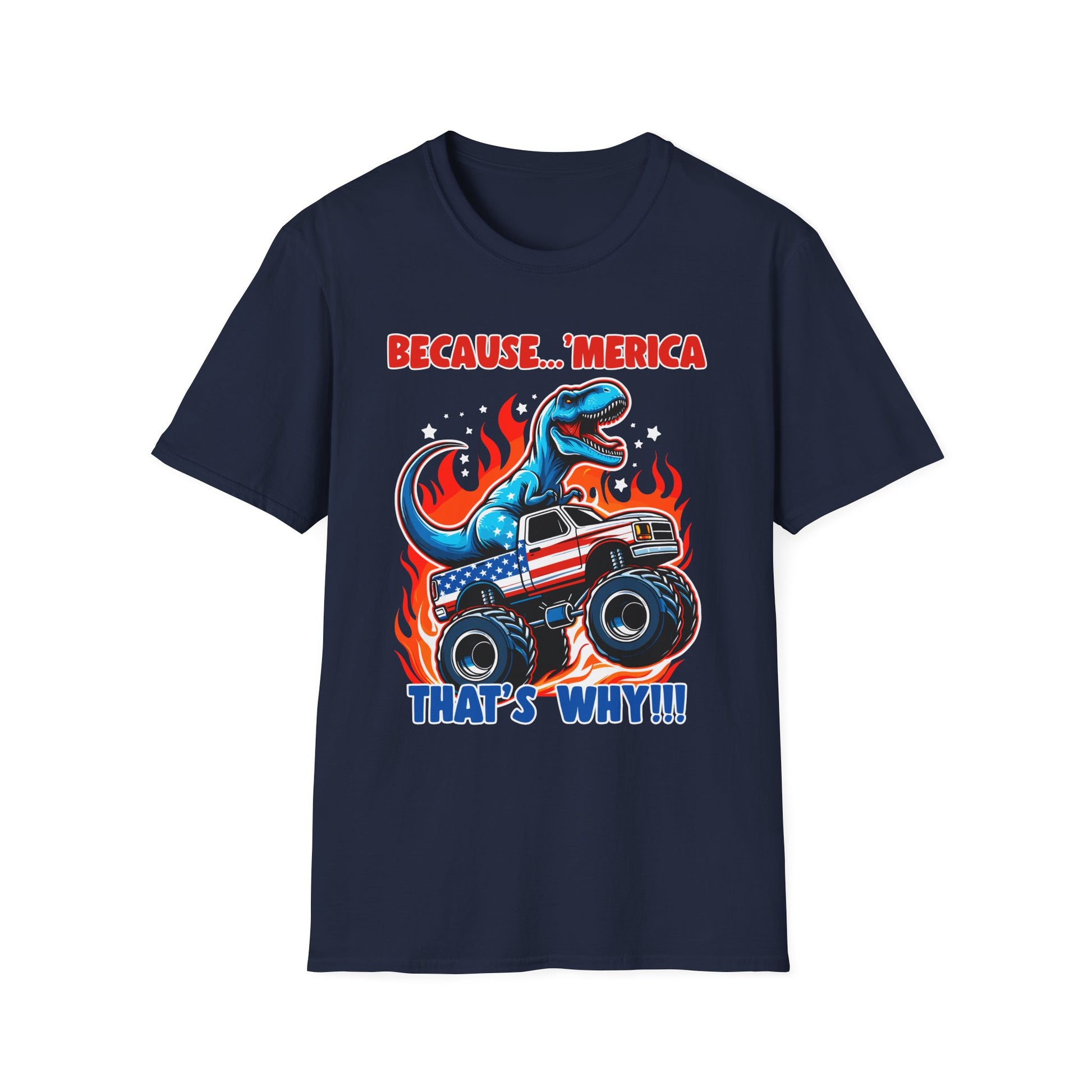Patriot Collection - Because 'Merica, That's Why!! - Dinosaur Riding a Monster Truck - T-Shirt