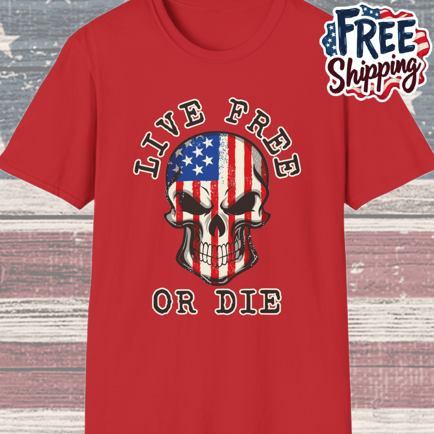 Patriot Collection - Live Free or Die - USA Skull - T-Shirt