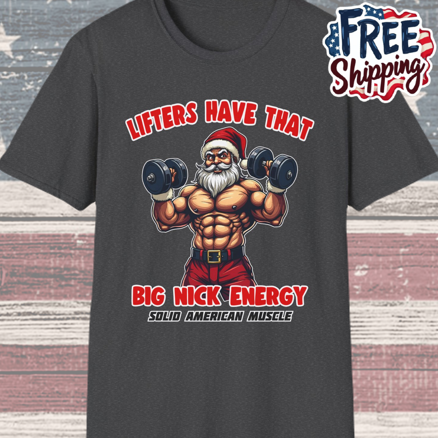 Solid American Muscle - Big Nick Energy - Ripped Santa Christmas T-Shirt