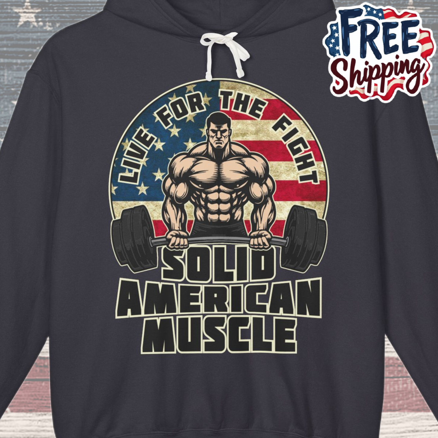 Solid American Muscle - Live for the Fight - Rustic Logo - Gym Hoodie / Pullover