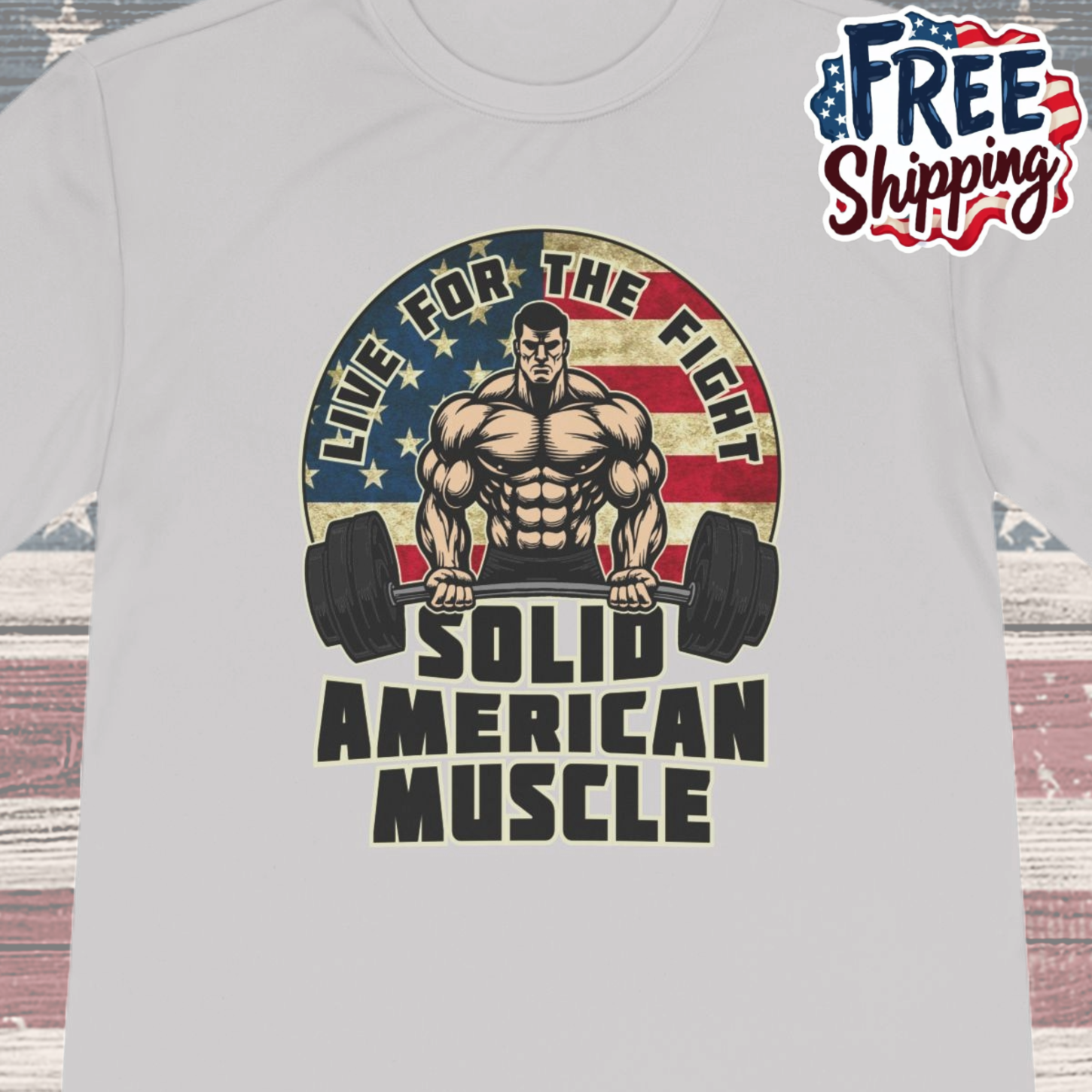 Solid American Muscle - Live for the Fight - Rustic Logo Moisture Wicking T-Shirt